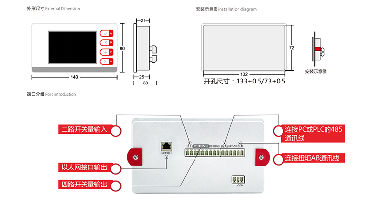 以太網口支持MODBUS-TCP協議和自定義協議。